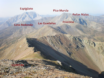 Se va pasando por las cumbres del Pico Cuartas (2.451 m., un metro más alto que el Espigüete, aunque no lo parezca), Las Guadañas (2.248 m.) y Frontino (2.197 m.). Estas dos últimas cumbres también reciben los nombres de Cebolleda y Las Guadañas, respectivamente.