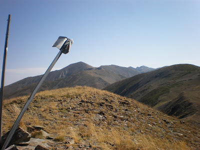 Ayer por la mañana dejé el coche en el aparcamiento de Cardaño de Arriba (1415 m.) y a las 7:30 h. salí rumbo al Pozo Las Lomas, suguiendo el bien marcado camino que ya he recorrido para ascender a Peña Prieta. Llegué al Pozo (2.078 m.) a las 9:00 h. Siguiendo un sendero indicado con hitos bajo las Agujas de Cardaño se va ganando altura, pasando junto a otra poza más pequeña (en algunas guías y mapas la llaman Charca de los Buitres, 2.255 m.) hasta alcanzar la arista que conecta las Agujas y el Pico Las Lomas. Desde aquí tenemos una excelente vista del leonés valle de Lechada, así como de los Macizos Occidental y Central de Picos de Europa. A las 10:00 hacía cumbre en Las Lomas (2.444 m.).